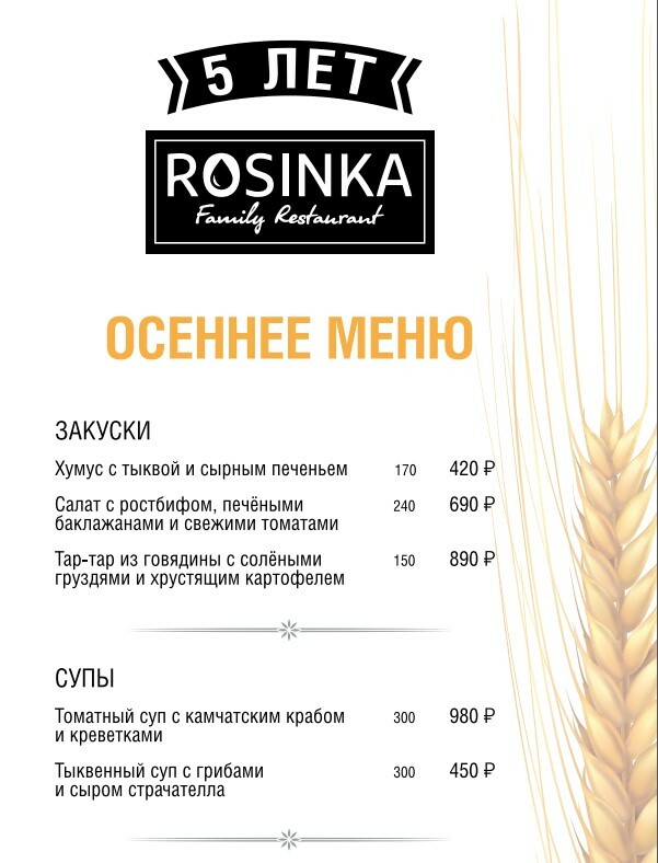 Также, в «Rosinka Village Market» Вы можете приобрести блюда, приготовленные в Ресторане.